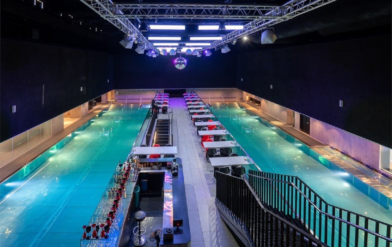 Главной особенностью загородного отеля стал впечатляющий 600-метровый бассейн с температурой воды 30°С. Здесь установлены 16 аэромассажных шезлонгов и несколько донных гейзеров с цветной подсветкой. В этой же зоне расположен двухуровневый ресторан MIZU Wet, где можно заказать блюда европейской и японской кухни, наблюдая за водными процедурами.